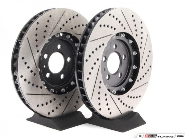 ECS Tuning engineered 2-Piece semi-floating rotors offer real world benefits that can be felt on both the street and track! Our 2-Piece rotors combine the advantages of weight savings and rapid heat dissipation to provide a rotor superior to stock while preventing warping and extending component life. The 15% reduction of unsprung weight by (3.5 pounds per rotor) improves handling characteristics under all situations. This reduction in rotational inertia allows for quicker acceleration, decreased braking distances, and more responsive handling.