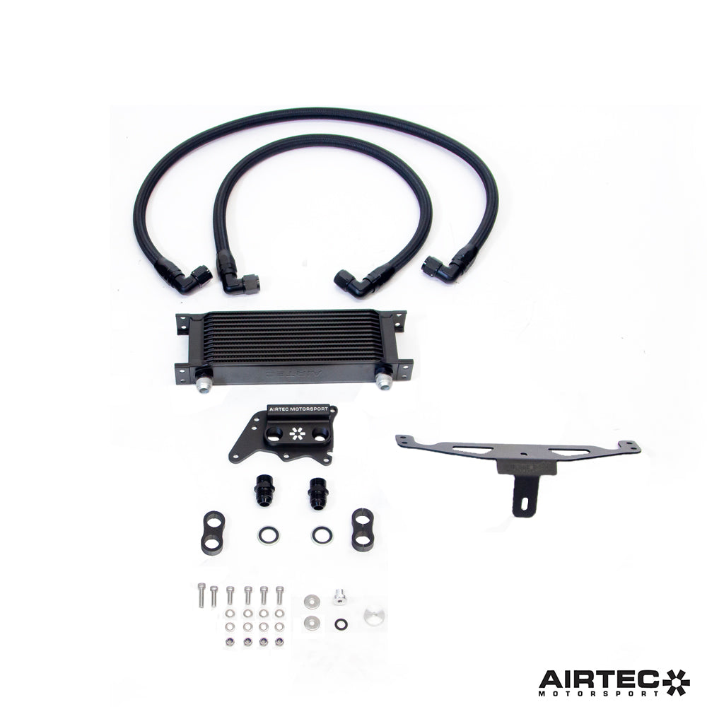 The package includes an AIRTEC Motorsport oil cooler, a billet sandwich plate, bespoke laser-cut and powder coated brackets, high-quality braided hose lines with Aerotec fittings and all fixtures and fittings, including instructions for a bolt-on installation. The kit is designed to integrate seamlessly with the car’s existing features and requires no drilling or cutting, so is completely reversible if need be.
