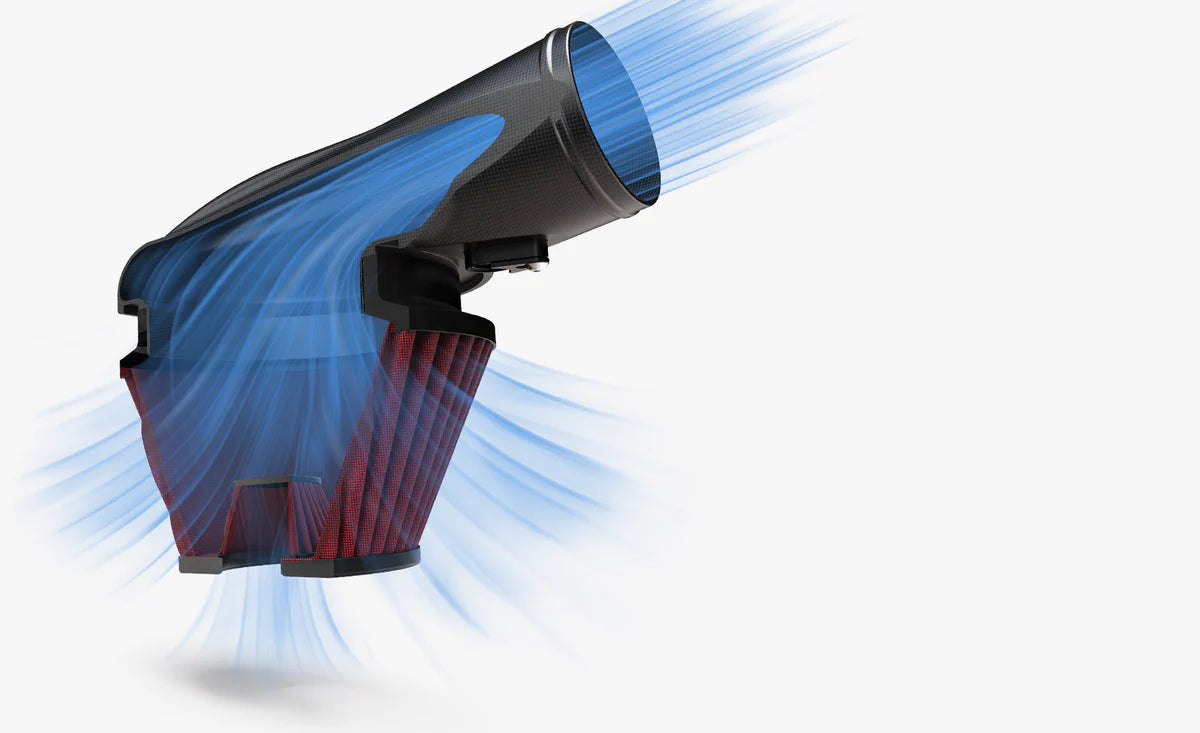 Thanks to the carefully CFD optimised large-bore carbon intake and air feed, together with our bespoke dual-entry air filter, this kit delivers maximum cold air where it matters, with minimal pressure drop - and thanks to the natural thermal properties of carbon fibre, you get an in-built heatshield, too.