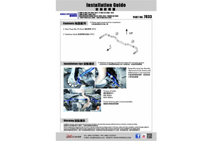 HardRace - REAR SWAY BAR 25.4MM - VW GOLF MK6 / TIGUAN 5N, AUDI A3/RS3 8P & TT MK2 8J