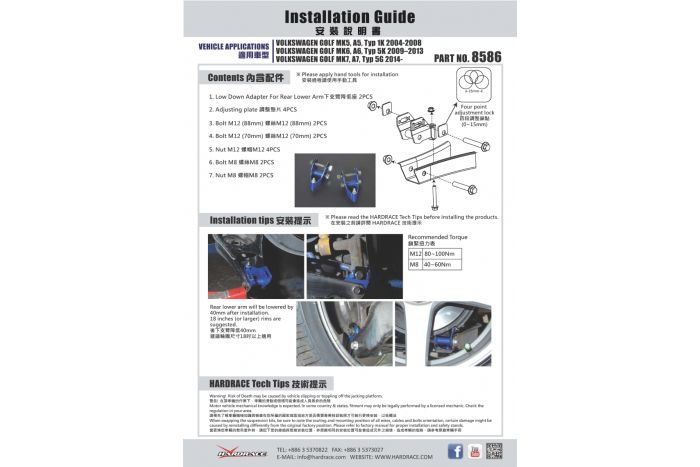HardRace - REAR LOW DOWN KIT - AUDI A3 8P, VW GOLF MK5/6/7, CADDY MK3, JETTA MK6, EOS, BEETLE, SEAT LEON MK2, SKODA OCTAVIA MK2