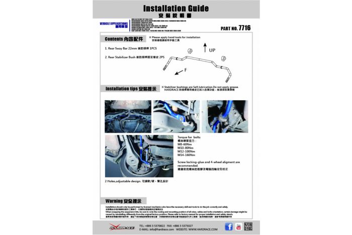 HardRace - REAR SWAY BAR 22MM - AUDI A3 8P, VW GOLF MK5/MK6, CADDY MK3, JETTA, SHARAN, EOS, BEETLE, SCIROCCO, SEAT LEON MK2, SKODA OCTAVIA MK2