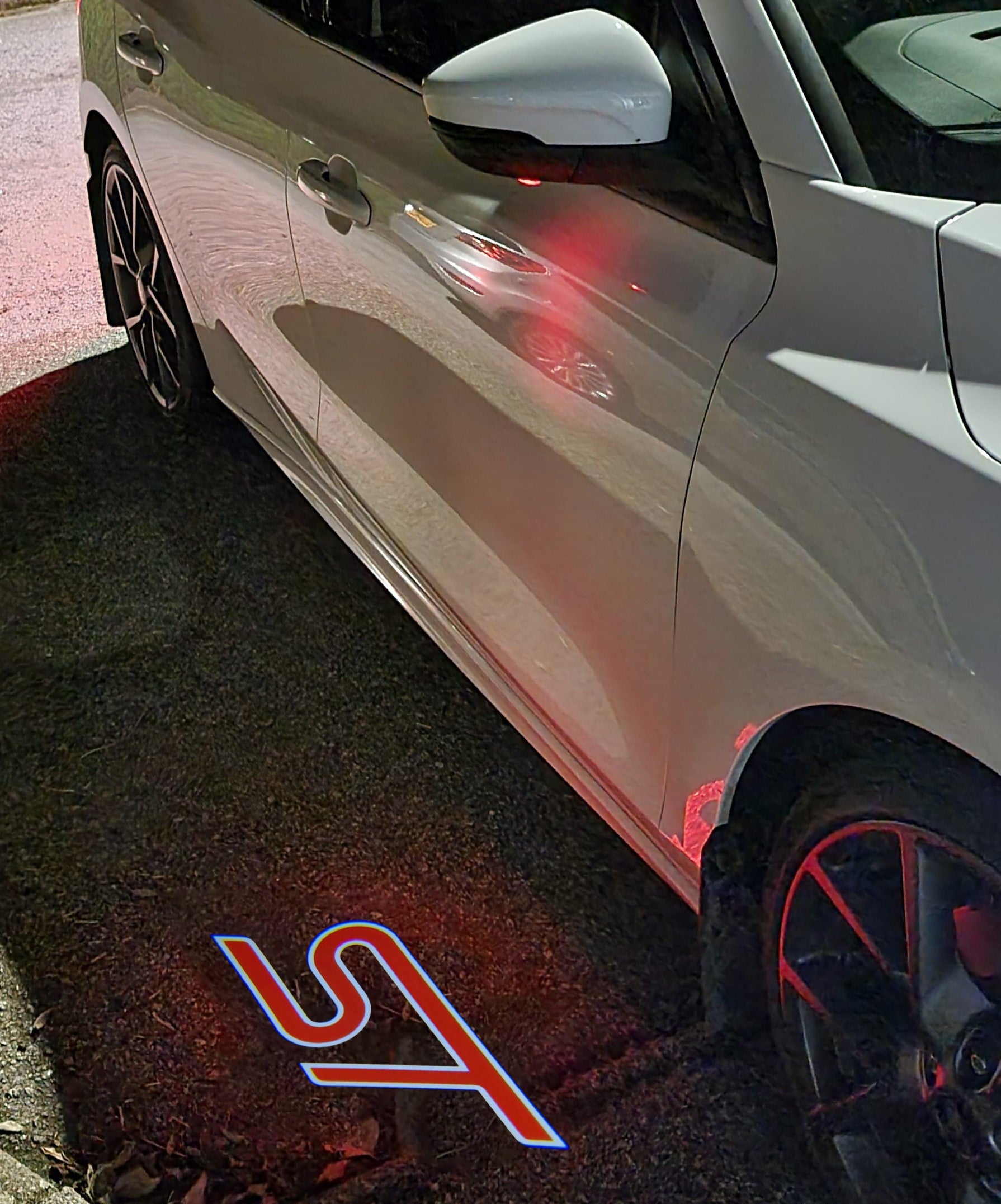Featuring a mini built-in projector, this unit casts a bold “ST” logo onto the pavement every time you open your door. Choose from: