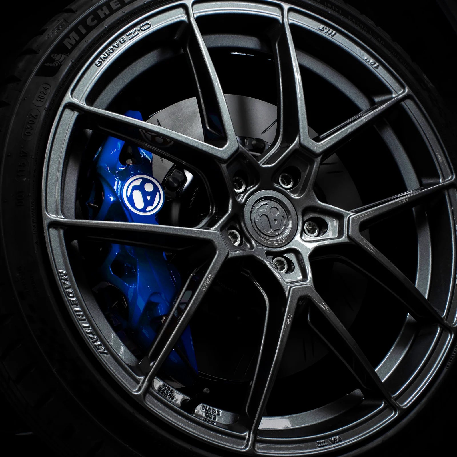 The 6-piston forged monobloc caliper is machined from a more expensive - and more durable, T6-6066 series aluminium, before being treated to our durable RS blue finish, with the whole caliper assembly weighting just 2.3kg!