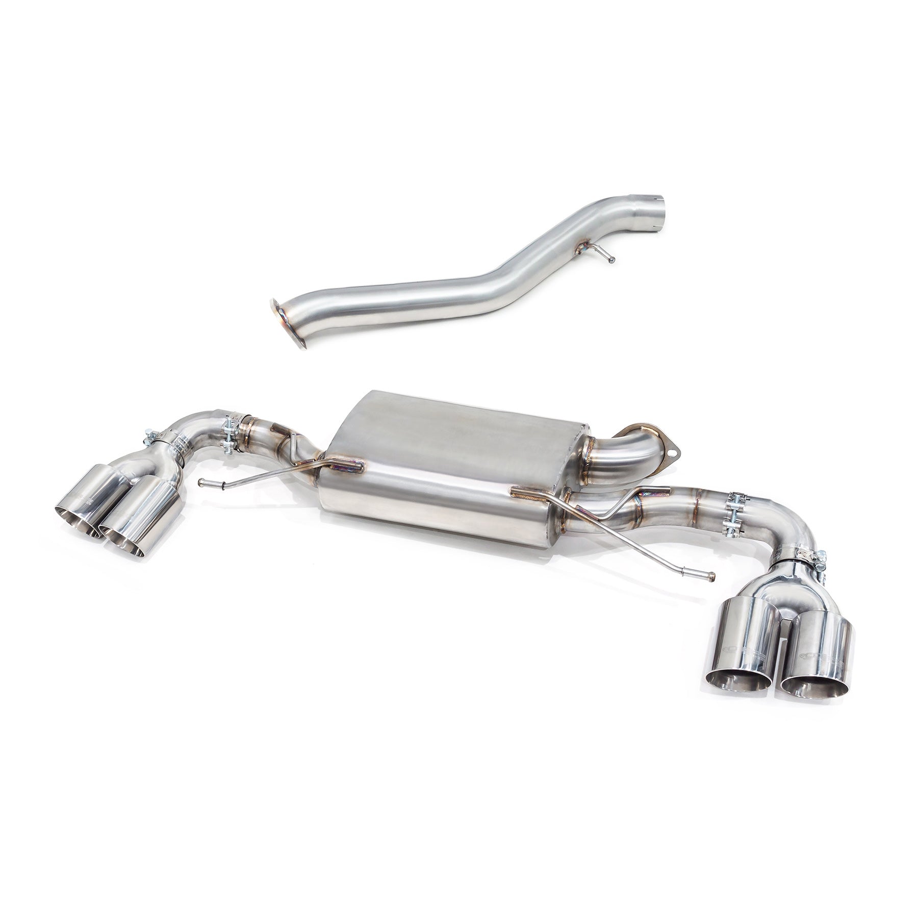 This quad tailpipe exhaust conversion (quad exit / 4 tailpipes) creates a deep more vibrant sporty exhaust sound. This exhaust has been developed using 3 inch/76.2mm stainless steel pipework and replaces the centre and rear sections.