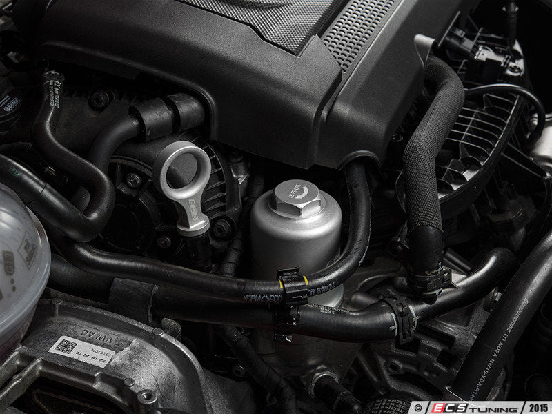 Forget about your fragile, dull plastic oil filter housing. The ECS Tuning billet aluminum oil filter housing is an attractive, durable upgrade, machined from a solid block of T6 6061 aluminum to exact OEM specifications down to the original factory size hex nut. The ECS filter housing accepts a factory engine oil filter to maintain simplicity and OEM fitment. You can forget about cracked housings or stripped heads.