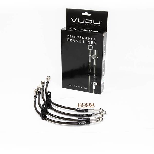 The VUDU Performance Brake Hose Kit brings a set of high performance braided brake lines to your Mk7 Ford Fiesta ST180 for Fiesta owners whom seek that ultimate braking performance. A direct replacement for the factory rubber brake lines, VUDU Performance have gone the extra mile in the production of this kit to not only bring that smoother but stronger brake feel but also provide an aesthetically pleasing look to the Fiesta braking system with the signature VUDU logo on show.