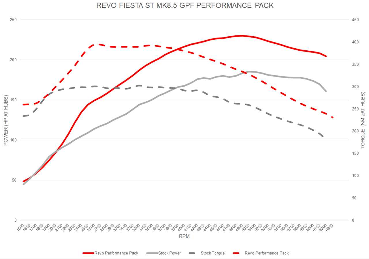 The 3 cylinder turbocharged 1.5 EcoBoost engine in the Ford Fiesta ST MK8 is smaller than the MK7 but packs even more of a punch. The ST's impressive low-down grunt and more responsive turbo offer great performance and a lot of potential for those driven to experience its true potential. Close monitoring of the GPF system has been an essential step in finding the limitations and tuning potential of the engines. The consensus is that the GPF not only mutes but limits the engine power, Revo ECU calibration might offer a reason to dispute that.